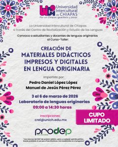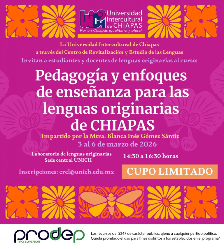 - Curso: Pedagogía y enfoques de enseñanza para las lenguas originarias de Chiapas.