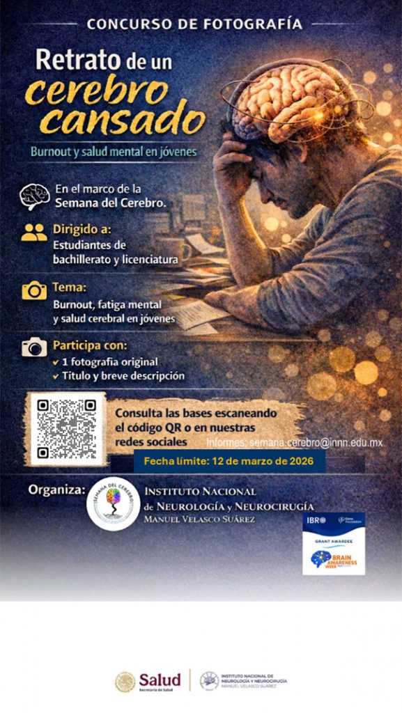 Convocatorias Concurso RETRATO DE UN CEREBRO CANSADO: SALUD MENTAL EN JÓVENES” marzo 9, 2026 Difusión CONVOCATORIA FOTOGRAFÍA_Semana del Cerebro 2026 INNNMVSDescarga