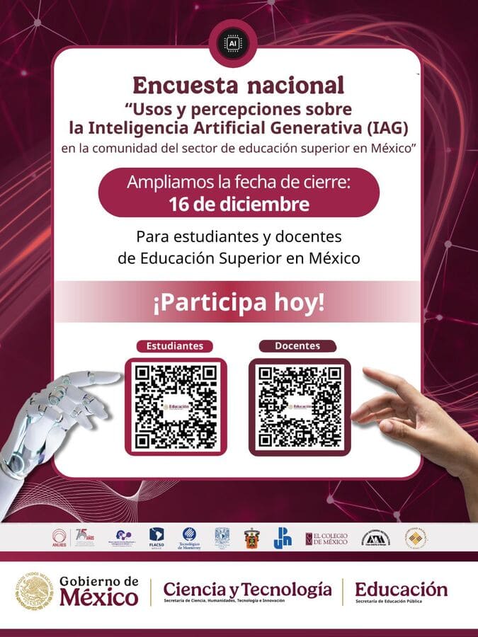 Convocatorias Encuesta nacional “Usos y percepciones sobre la Inteligencia Artificial Generativa (IAG) diciembre 2, 2025 Difusión