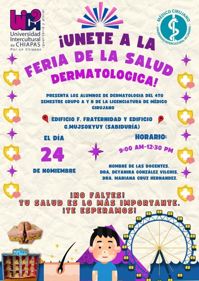 Eventos La Universidad Intercultural de Chipas te invita a la feria de la salud dermatologica. noviembre 24, 2025 Difusión Te esperamos.