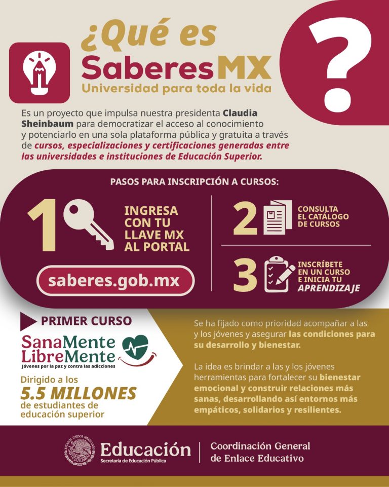 Registro para tomar cursos de acuerdo a su interés a través de la plataforma SaberesMX