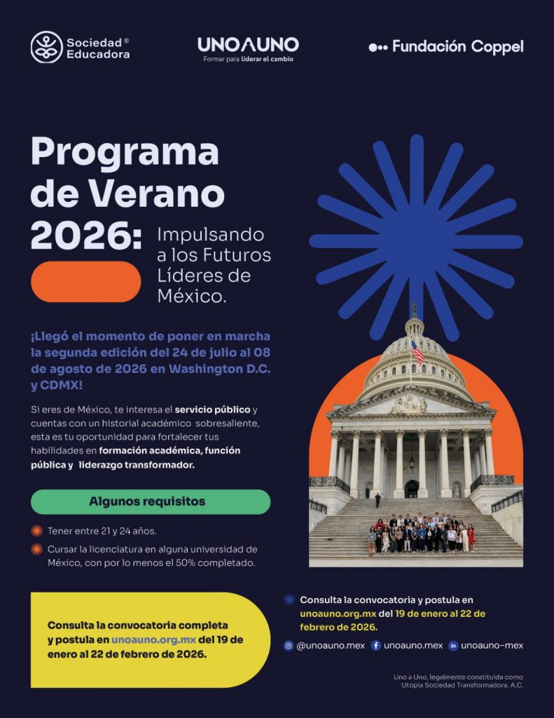 Uno a Uno, Fundación Coppel y Sociedad Educadora te invitan a participar en la 2ª edición del Programa de Verano: Impulsando a los Futuros Líderes de México 🇲🇽