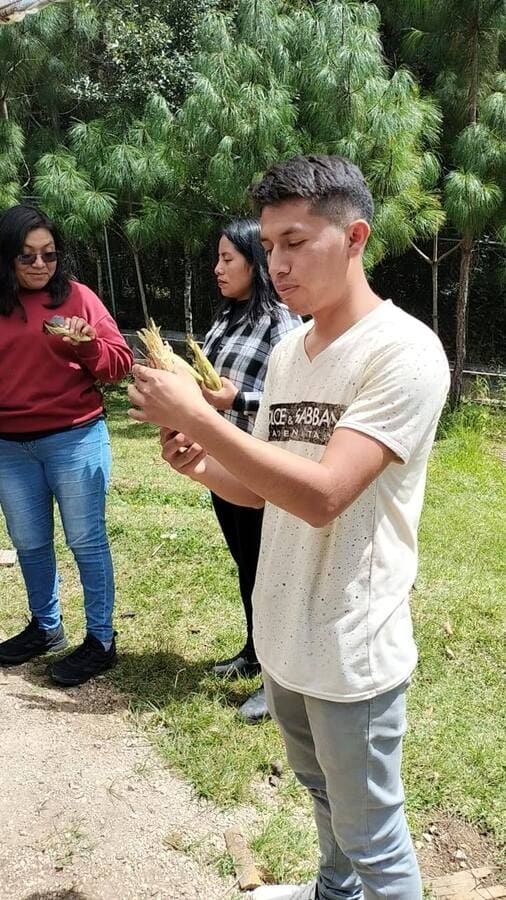 Actividad que fue enriquecedora por los aportes que proporcionaron los participantes en el intercambio de conocimientos y experiencias acerca del maíz, del frijol y de la importancia del doblado de la milpa del maíz, para que sequen las mazorcas y se complete otra parte de su ciclo.