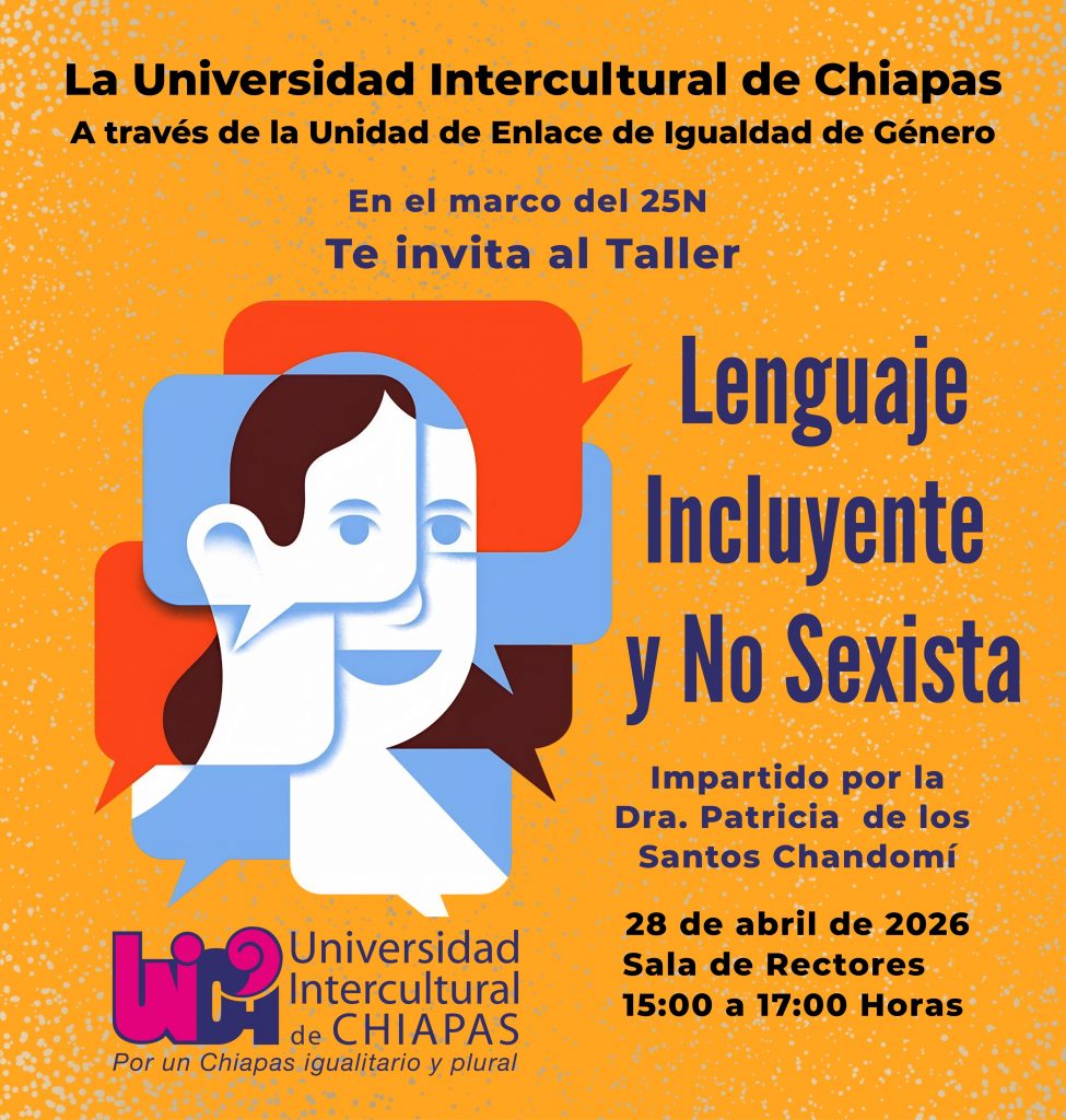 La Universidad Intercultural de Chiapas A través de la Unidad de Enlace de Igualdad de Género te invitan al Taller de Lenguaje incluyente y no sexista.