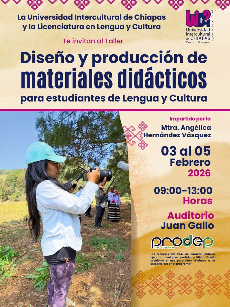 La Universidad Intercultural de Chiapas y la academia de la Lic. en Lengua y Cultura invitan: Al Taller para el diseño y producción de materiales didácticos